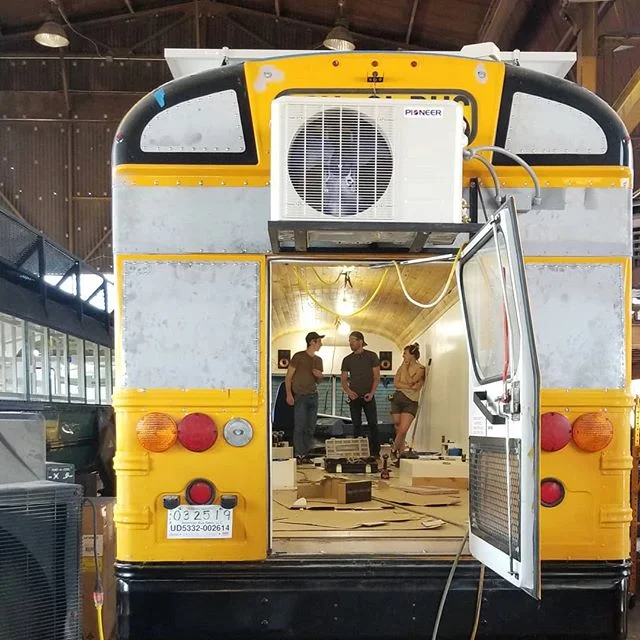 We added over 1800 watts of solar to the roof, a full insulation package, kitchen, slide out chest freezer-turned-fridge, composting toilet and built in sewing machine to complete the build. Sarah makes her hats and sells them all around the country in Lucy, her custom bus. Make sure to check out her website, http://www.hecstudio.com, and follow her adventures on Instagram @hecstudio