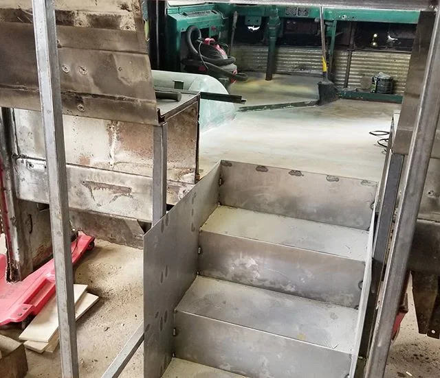 We don’t only do full-builds and if there’s something you’d like to build that you’ve never seen before, share your dreams with us and we can make it happen. From custom, up-fitted toolboxes-turned cabinetry, to one-of-a-kind front doors, to school bus wiring removal and spray foam insulation, we do it all.