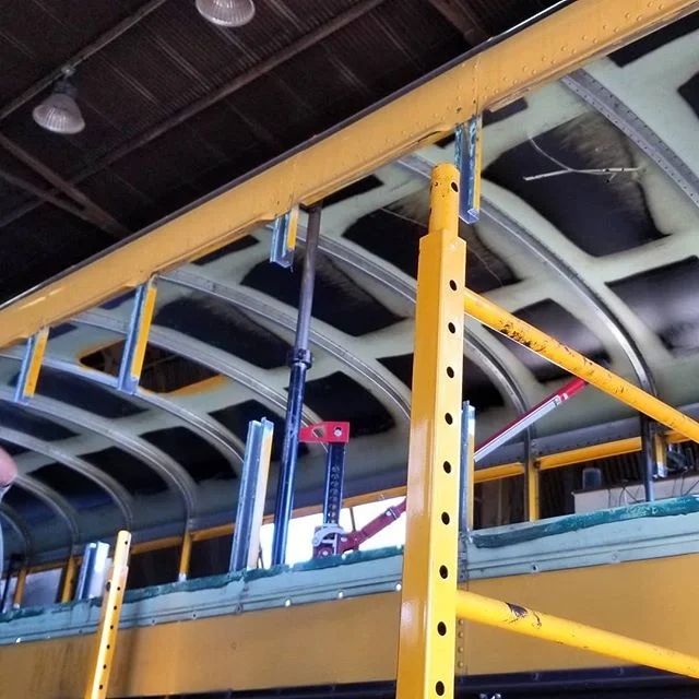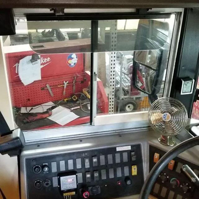 In 2016 we converted a 1994 AmTran into a mobile studio on wheels for HEC Studio. The bus started with an International DT466, Allison MT643, auto chains, air ride, and low miles.